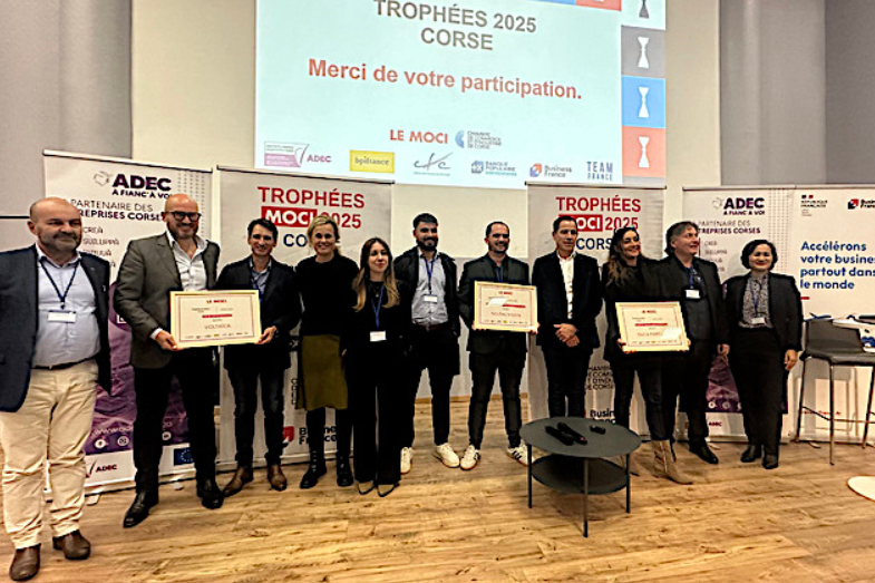 Cette édition a été marquée par la remise des premiers Trophées du Moci en Corse, un concours national récompensant les entreprises les plus dynamiques dans leur stratégie d’exportation à l’international. Deux catégories étaient mises en avant : PME/ETI et start-up/innovation. « On cherche un mix à la fois de plans ambitieux et de résultats, donc des gens qui ont montré qu’ils arrivaient à concrétiser leurs ambitions sur le terrain et devenir des boîtes qui réussissent à l’international », détaille Emmanuel Saint-Martin, président du Moci, une revue française spécialisée dans le commerce international. « Si on veut être une boîte ambitieuse, et notamment en situation insulaire comme en Corse, il faut avoir une stratégie internationale. C’est ça qu’on regarde : est-ce que cette stratégie internationale a du sens ? Est-ce qu’elle a donné des résultats ou pas ? »