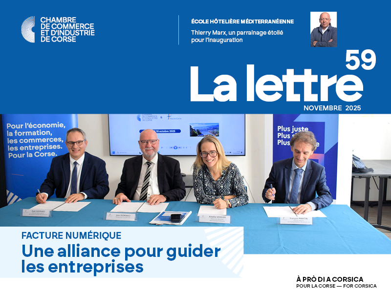 Mais la perspective de doter enfin la Corse d’une structure de formation d’excellence, ne nous détourne pas du cours de la vie quotidienne des entreprises, marquée aujourd’hui par la préparation d’une étape capitale : le passage à la facturation électronique. Une bascule qu’il convient d’accompagner et de réussir. C’est la raison pour laquelle la CCI de Corse a signé une convention de partenariat avec la Direction des Finances Publiques en présence de la Directrice Nationale. Ainsi les TPE et les PME insulaires bénéficieront des conseils et soutiens indispensables pour franchir sereinement cette importante réforme comptable et fiscale.